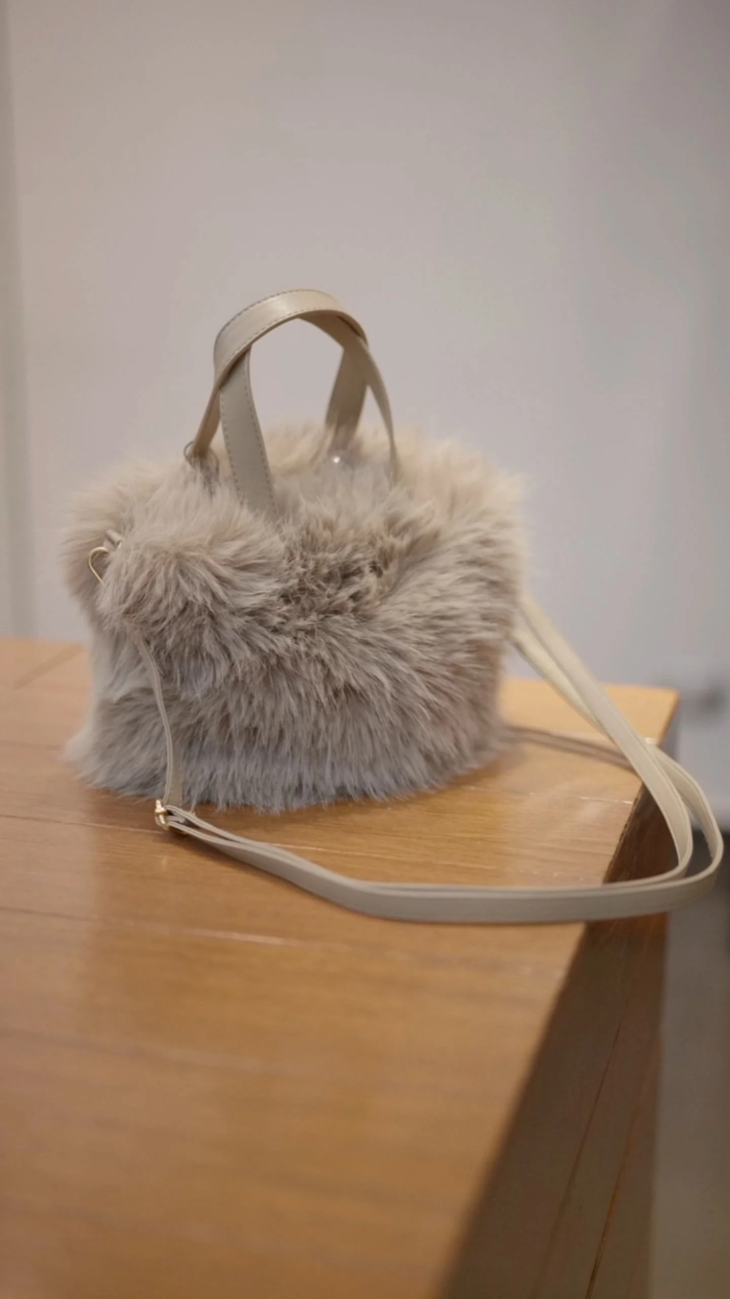 Manico con nodo decorativo per indossarla a spalla e una tracolla regolabile e staccabile.