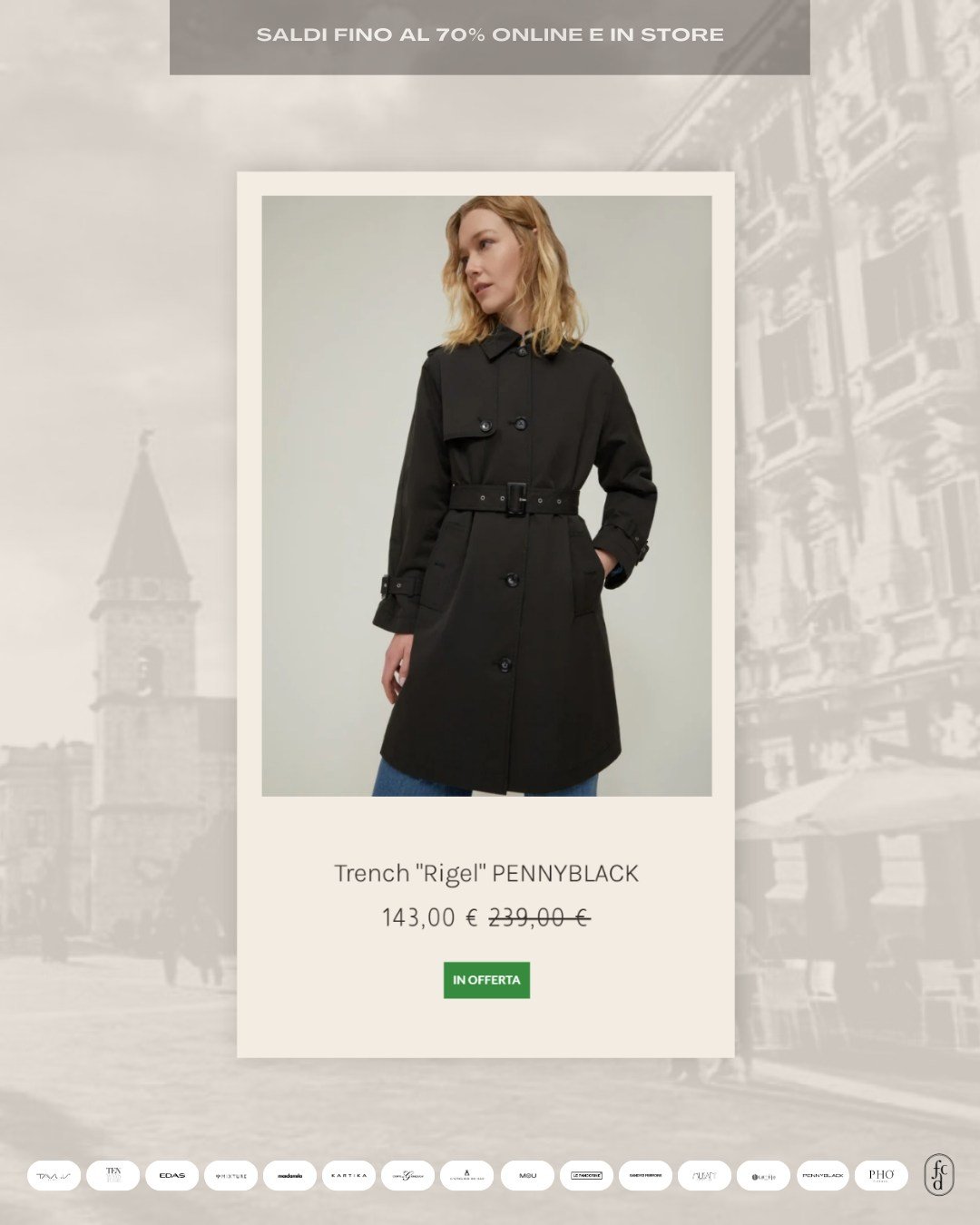 Disponibile in blu o in cammello con dettagli avorio